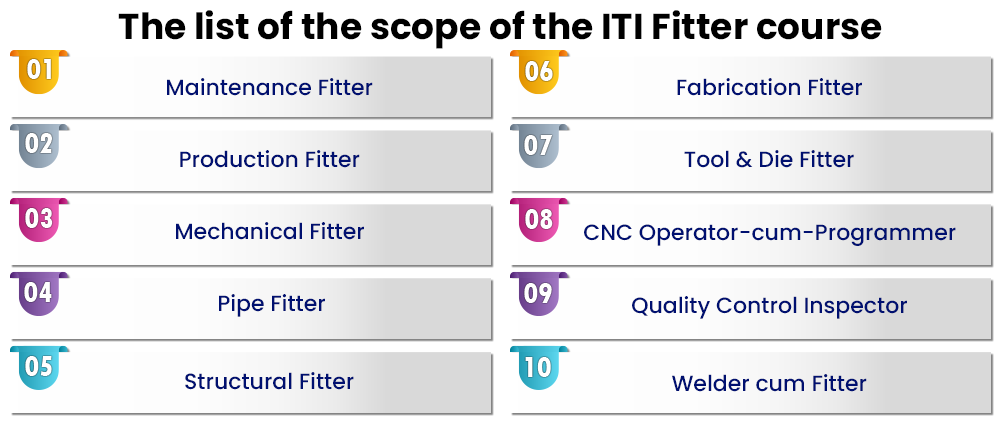 An ITI Fitter course covers a broad range of prospects in the manufacturing and industrial industries. The Industrial Training Institute, or ITI, provides a Fitter course designed to give specialized knowledge and abilities in the fitting and assembly of different types of machinery.