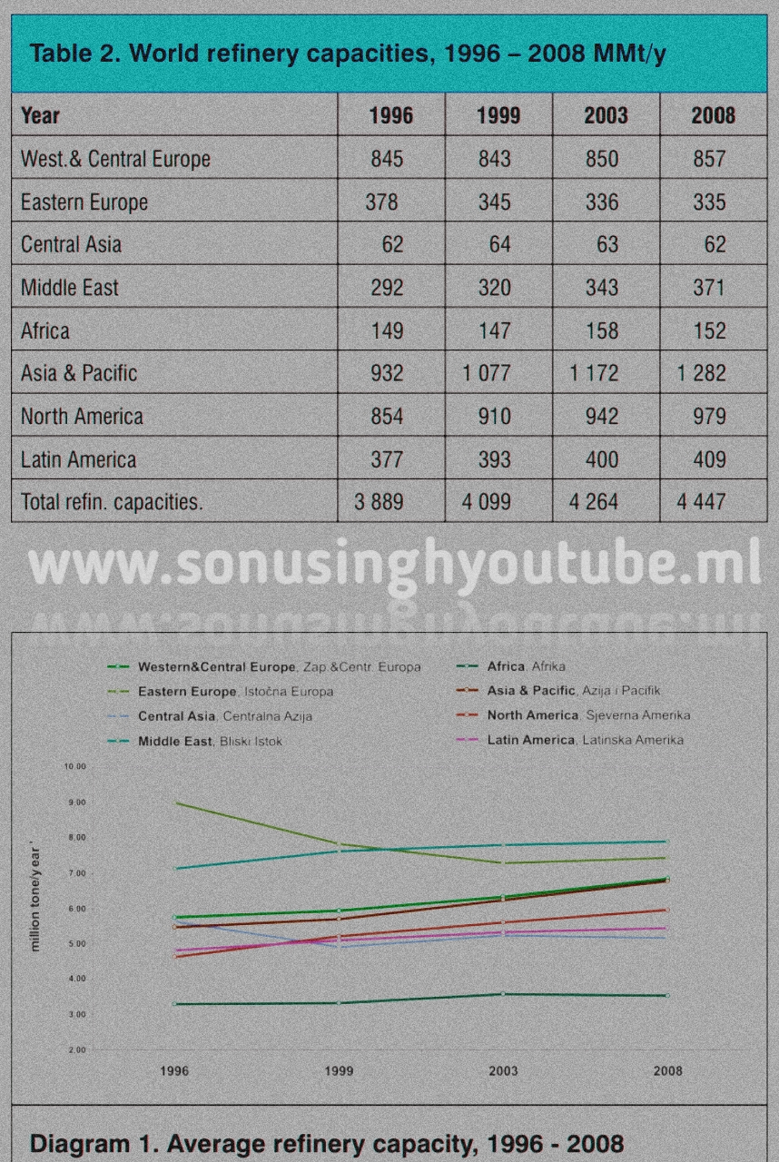 The ongoing turn of the thousand years is described by expression of development of world oil refineries into a slight decline, as represented in Table 1, which demonstrates the number of refineries by world locales from 1996 until 2008.